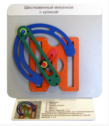 Может использоваться как наглядное пособие для обучения при чтении лекций и демонстрация шестизвенного механизма с кулисой.