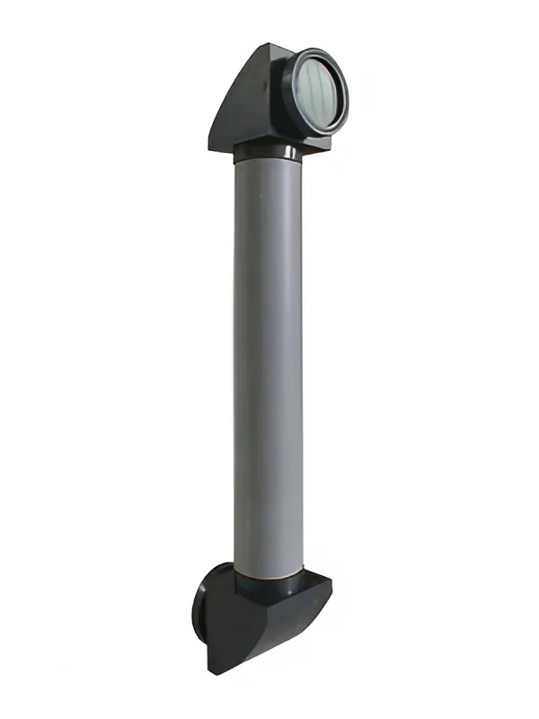 Модель состоит из пластмассовой трубки длиной около 200 мм, на концах которой надеты одинаковые призматические насадки. В насадках закреплены плоские зеркала под углом 45° к оси трубки. Круглые смотровые отверстия призматических насадок закрыты стеклами.