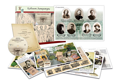 Печатные материалы включают художественно оформленные постеры c изобразительными и документальными материалами, организованными по хронологически-тематическому принципу: начиная от поэтов символистов и заканчивая поэтами, стоявшими вне течений в своем творчестве. Содержание постеров является своеобразной опорой при изучении поэзии конца XIX - начала XX в. Постеры могут быть использованы как для предъявления на уроках литературы при изучении поэзии «Серебряного века», так и для временного или постоянного оформления кабинетов литературы, а также проведения тематических школьных или классных мероприятий.