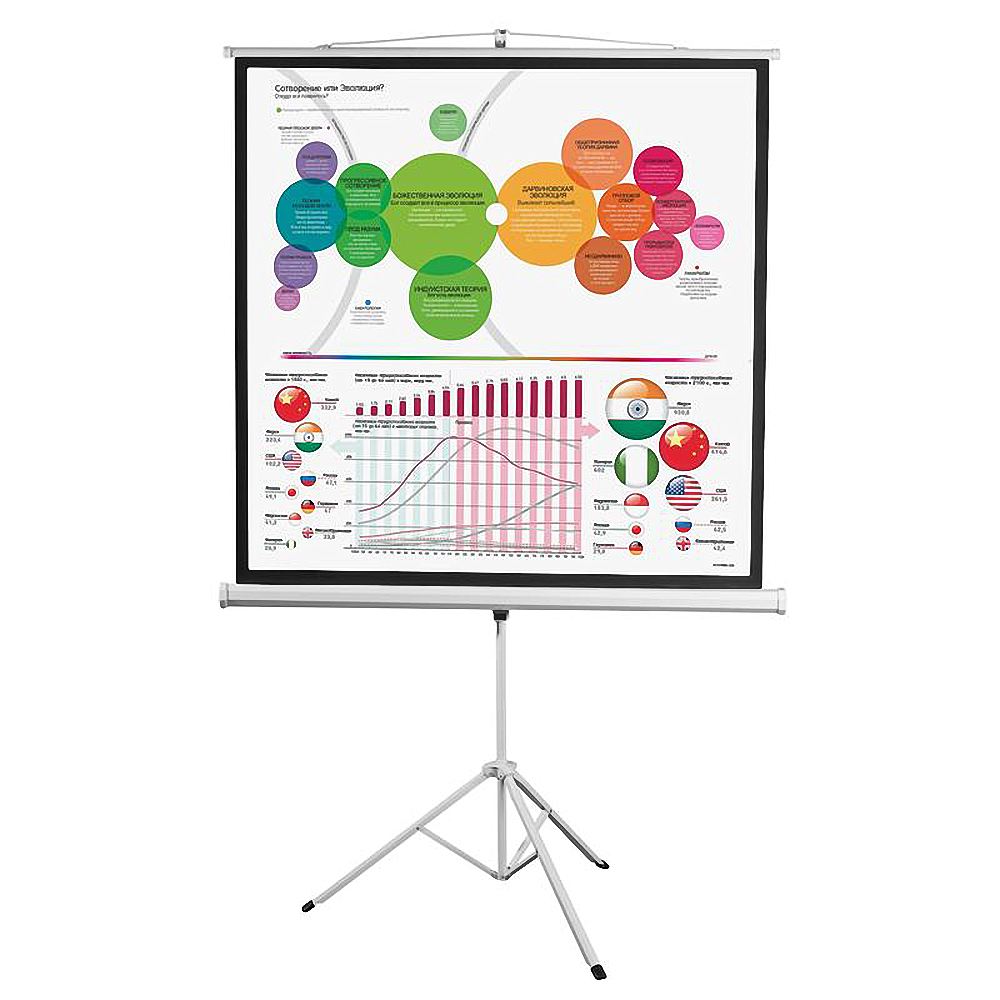 Экран на штативе DSKD-1104 (серия Kontur-D. Формат 1:1, Диагональ 96", 178x181) – переносной экран для видеопроектора, устанавливающийся на устойчивую треногу. Телескопическая стойка с фиксирующими регуляторами обеспечивает особенно быстрое разворачивание и сворачивание.