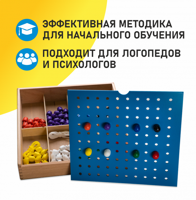 Модуль № 11 (J1) состоит из цветных бусин, имеющих кубическую, цилиндрическую и шарообразную формы (цветные тела) и ниточки для их нанизывания. Прекрасно развивает мелкую моторику, дает первые навыки классификации предметов по форме и расцветке.