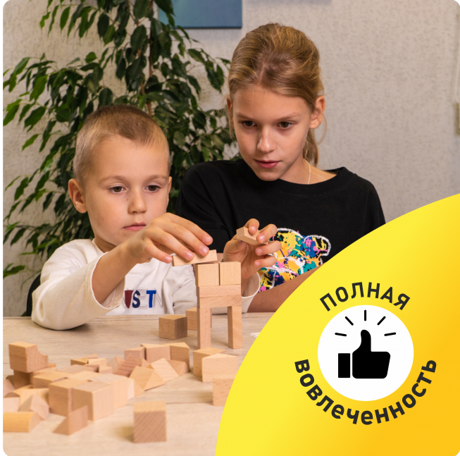 Модуль № 13 (5B), состоящий из 44 элементов разной формы (кубики, призмы, цилиндры и др.), учит ребенка создавать сложные сборные сооружения и конструкции (Башенки)