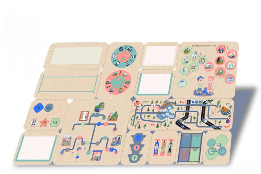 - Ребенок может сам играть в эту панель. Это отличное поле для фантазий и ролевых игр. Подходит для игр в группе.