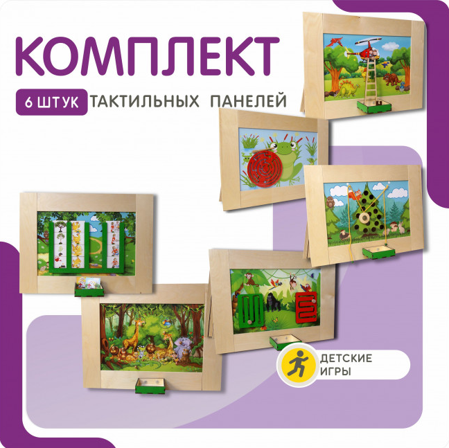 Комплект тактильных панелей №1 – это уникальный набор, который помогает развивать тактильные ощущения и моторику у детей от 3-х лет. В комплекте 6 различных панелей, каждая из которых имеет свою тематику и задачу. Таким образом, комплект может использоваться одновременно для игры до 6 детей.