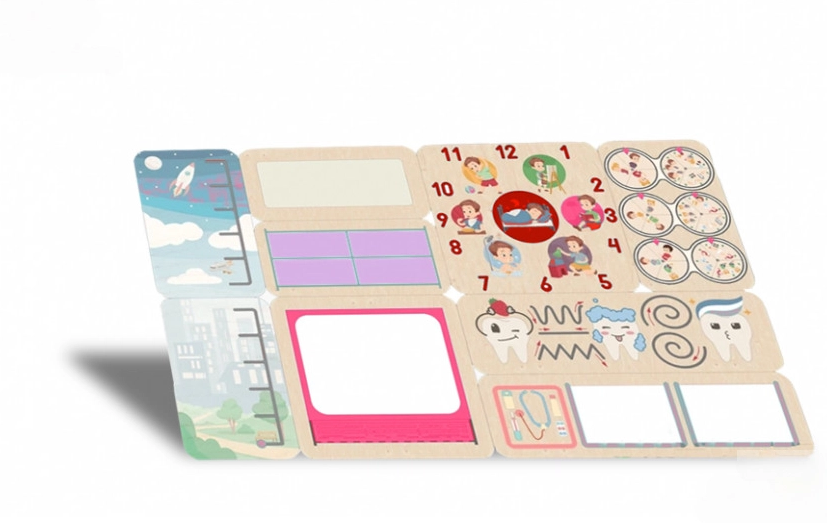 Послужит наглядным примером для малыша, как правильно должен начинаться и проходить день ребенка. Это обучающий плакат, который поможет детям научиться правильно чистить зубы. Часы помогут детям узнать цифры и понимать временное пространство. В зависимости от времени суток, чтоб малыш может делать, во сколько вставать и ложиться спать. Во вкладыши можно вставлять нужные записки и напоминания о важных делах.
