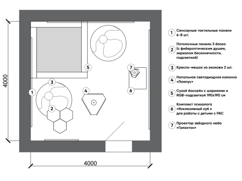 Комплект оборудования для сенсорной комнаты 16 м²