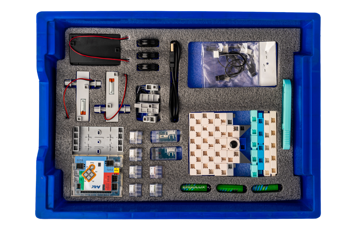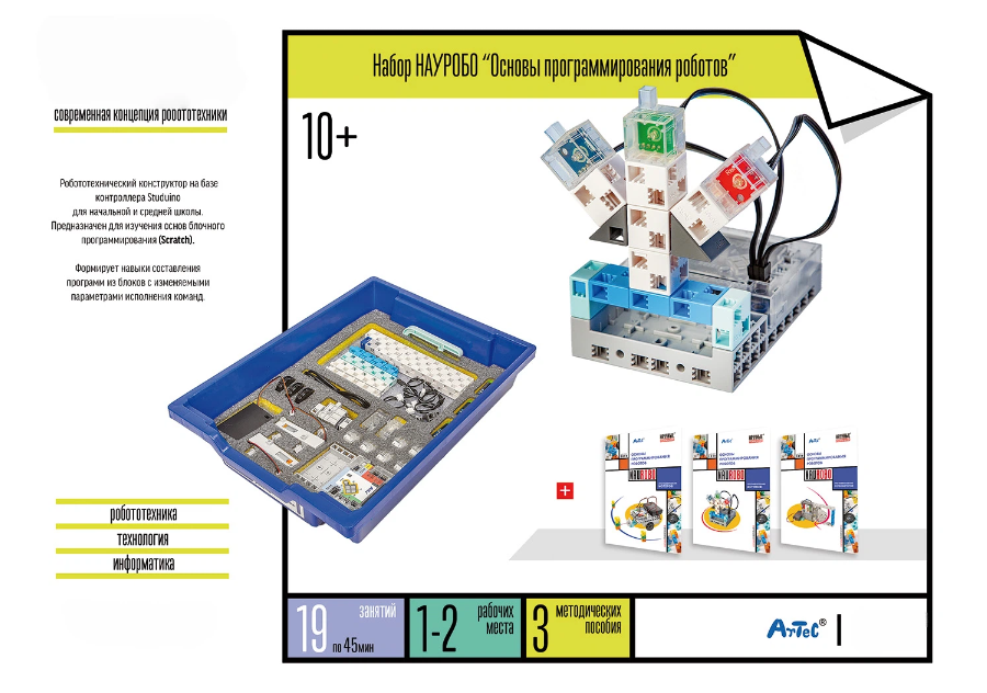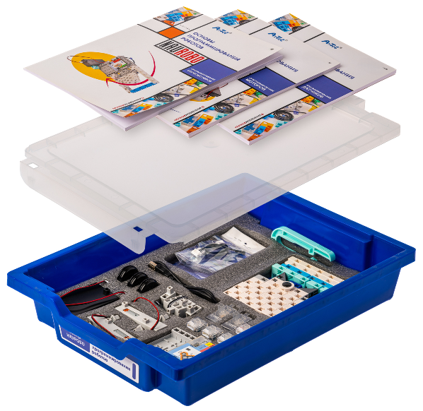 Набор предназначен для обучения детей младшего и среднего школьного возраста приемам программирования с применением обратной связи в виде датчиков и исполнительных механизмов разных типов (моторов, сервомоторов, светодиодов и зуммеров).