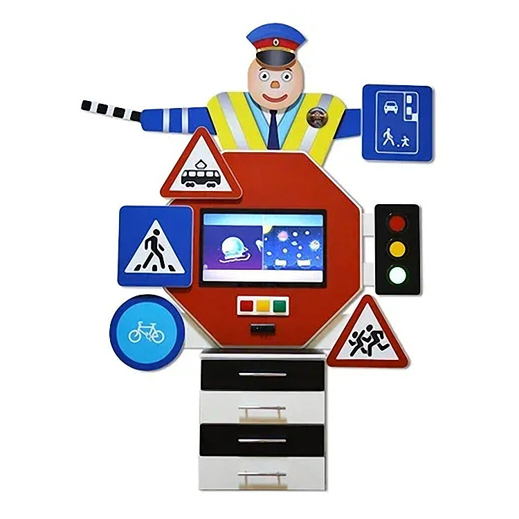 Мультимедийный интерактивный комплекс ПДД «СТОП» выполненный из декоративного корпуса ЛДСП с кромкой ПВХ он подойдет для обучения детей правилами дорожного движения, дошкольного и начально школьного возраста. С помощью этого модуля и 340 программ занятия будут проходить с большим интересом для каждого ребенка. Программы разработаны специально для изучения правил дорожного движения в игровой форме на такие темы как (проезжая часть, знаки, транспорт, светофор).