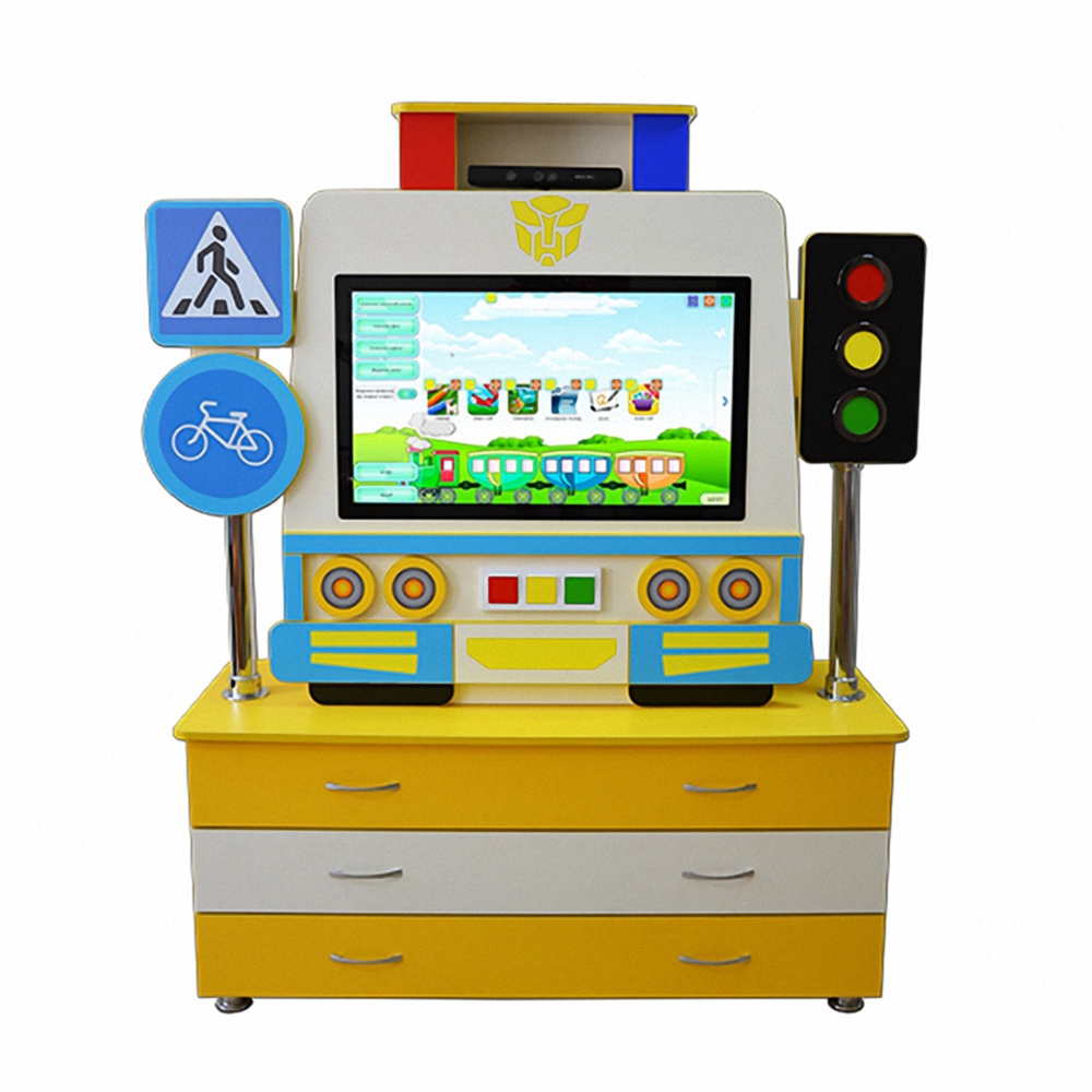Профессиональный интерактивный комплекс-тренажер ПДД «Автобот» + датчик Kinect для детей. Оборудование включает дидактические материалы, наглядные обучающие пособия, видеоролики по освоению ПДД, тестированию и проведению занятий в игровой развлекательной форме. Во время уроков ребята обучаются правилам поведения на дороге, в общественном транспорте, машине. Кроме того, для наглядности устройство оснащено знаками дорожного движения, светофором. Для хранения материалов встроены ящики.