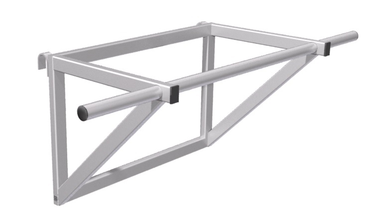 Перекладина навесная предназначена для навешивания на гимнастическую стенку. Представляет собой цельно-сварную конструкцию, состоящую из горизонтальной перекладины, закрепленной неподвижно на вертикальных стойках.